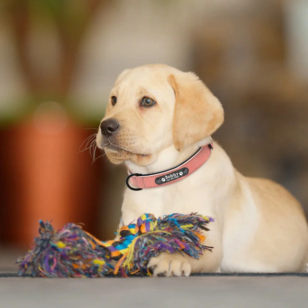 Het zachte leer zorgt voor een comfortabele pasvorm voor uw hond, terwijl de gepersonaliseerde ID-tag zijn naam en uw contactgegevens duidelijk weergeeft.