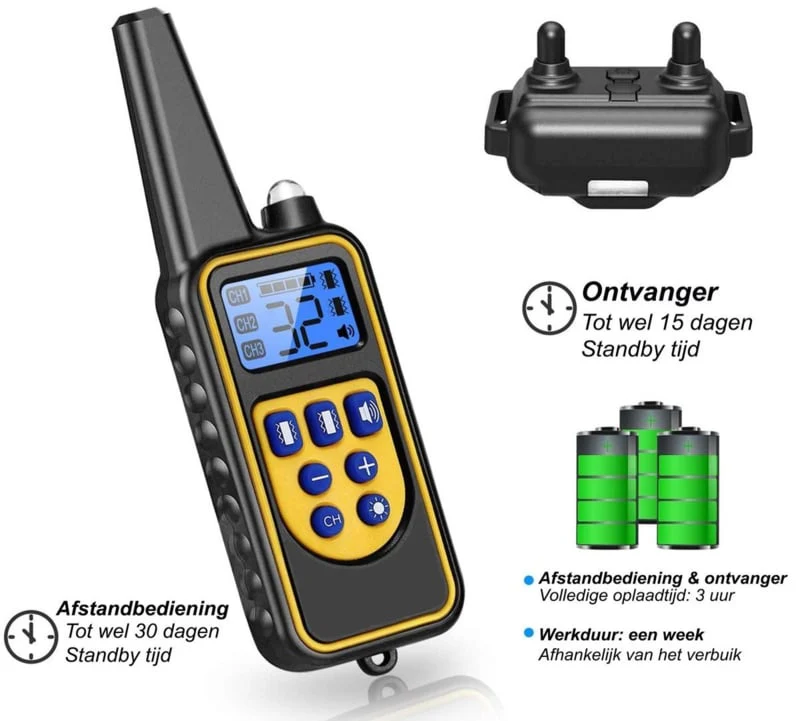 Dit innovatieve systeem heeft een groot bereik van 500 meter, zodat u slecht gedrag van veraf kunt corrigeren. Bovendien zorgt het oplaadbare ontwerp ervoor dat je altijd klaar bent voor die onverwachte blafmomenten.