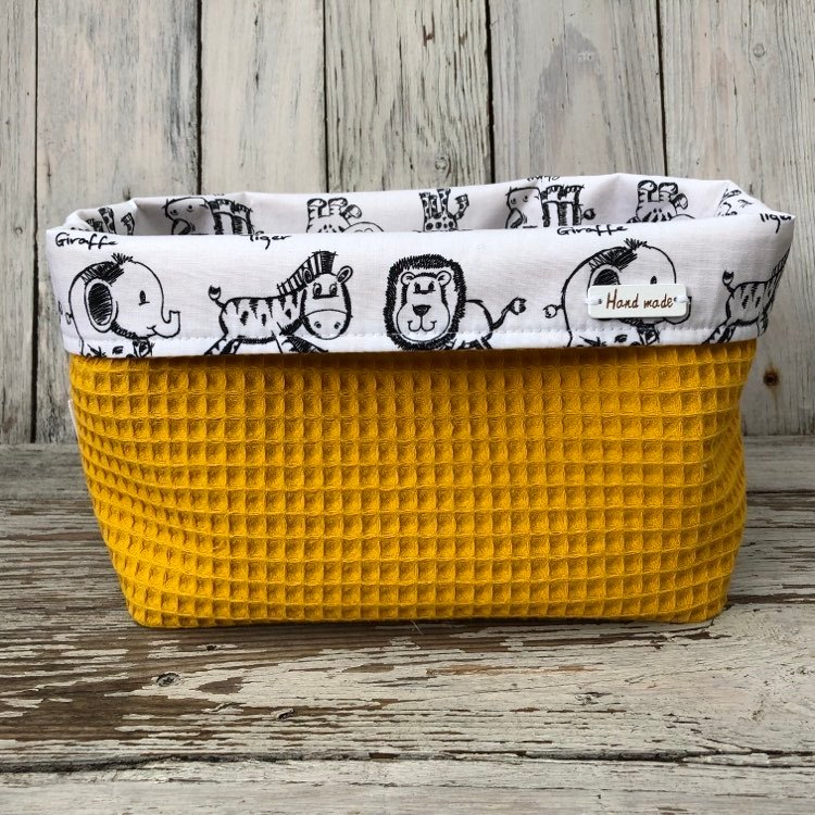 Ben je op zoek naar een unieke en praktische oplossing voor de babykamer? Het Commodemandje Dieren Okergeel is een prachtige combinatie van functionaliteit en design. Dit handgemaakte mandje met dierenprint en okergele wafelstof is zowel ideaal om de babykamer netjes te houden als overzichtelijk.