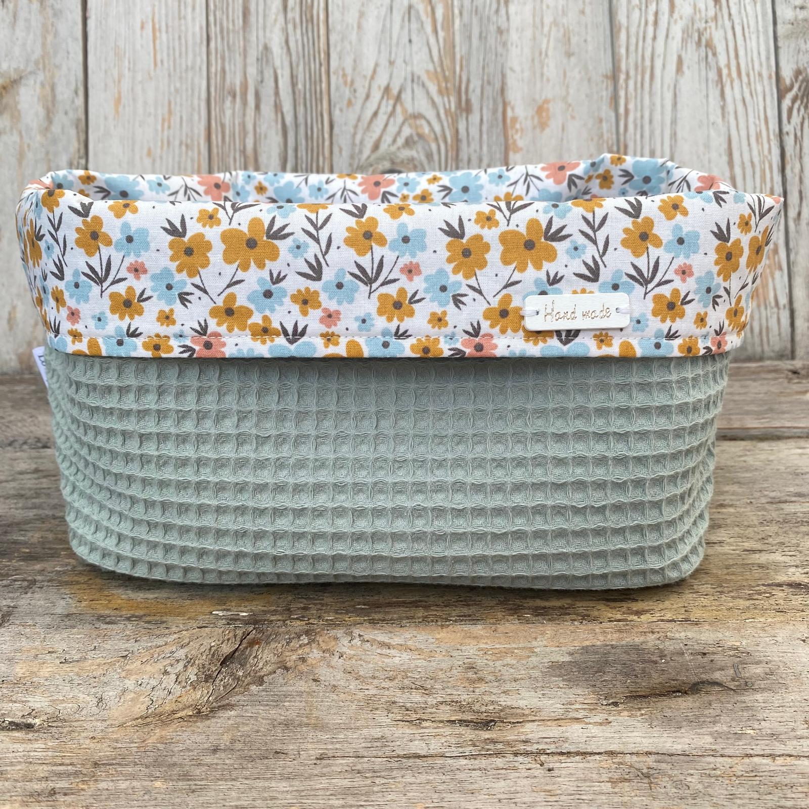 Ben je op zoek naar een unieke en praktische oplossing voor de babykamer? Het Commodemandje Flower Power Oudgroen is een prachtige combinatie van functionaliteit en design. Dit handgemaakte mandje met bloemenprint en oudgroene wafelstof is zowel ideaal om de babykamer netjes te houden als overzichtelijk.