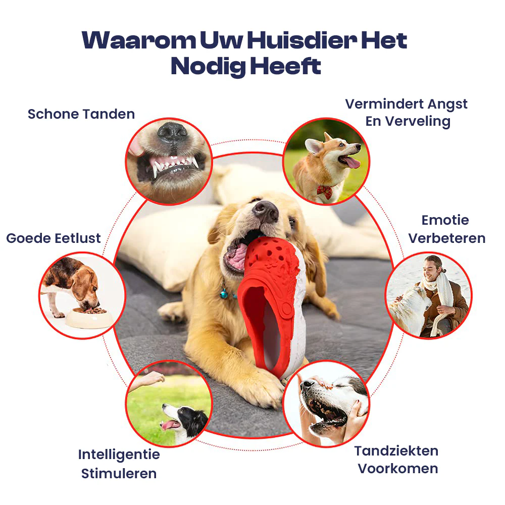 Het heeft de vorm van een pantoffel en biedt een leuke ervaring voor uw harige vriend, terwijl het helpt om destructieve kauwgewoonten te voorkomen.