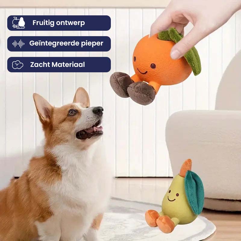 Dit speeltje is kauwbestendig, het is ontworpen om eindeloze speelsessies aan te kunnen en je harige vriend te vermaken. Het levendige fruitige ontwerp prikkelt hun zintuigen en de ingebouwde pieper zorgt ervoor dat het urenlang leuk blijft, zodat je pup blij en actief blijft.