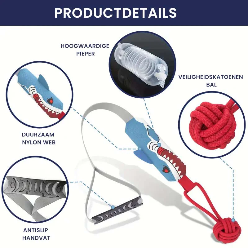 Maak kennis met ons interactief hondenspeelgoed! Ontworpen in leuke dierenvormen zoals haaien, adelaars en maïskolven, biedt dit speeltje eindeloos vermaak terwijl het de fysieke en gebitsgezondheid van je hond bevordert.