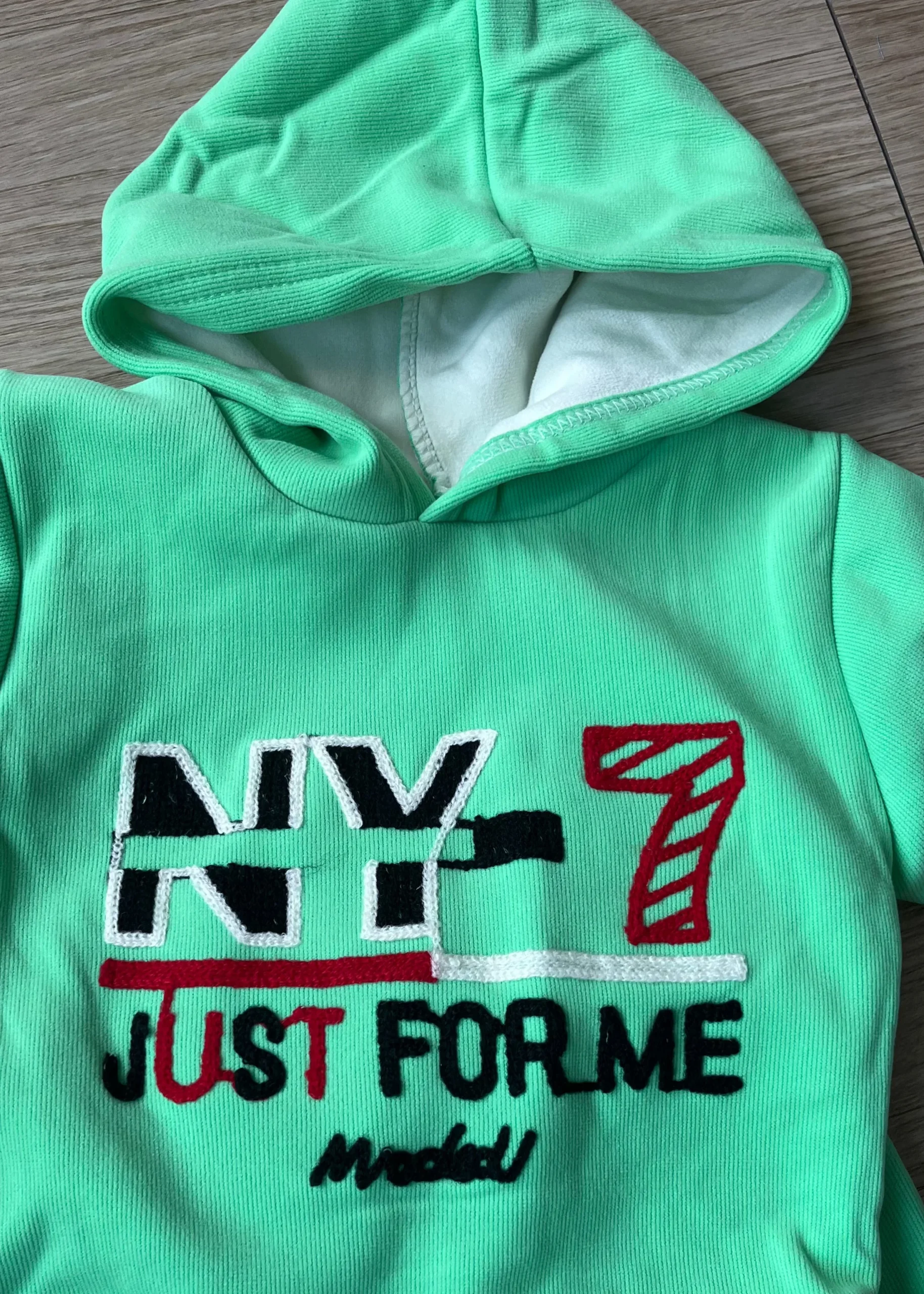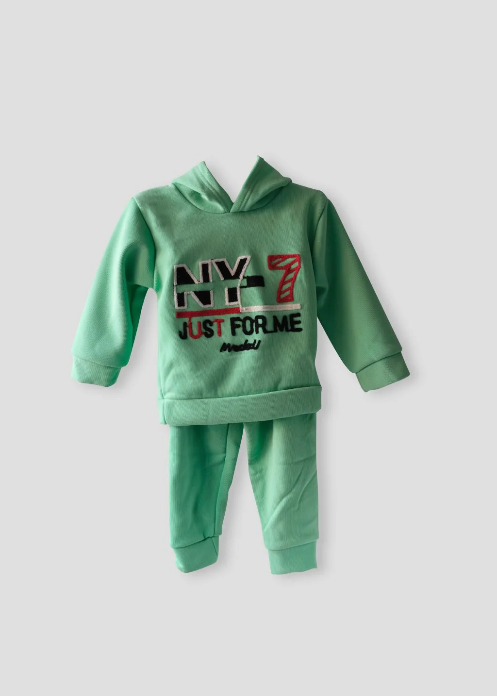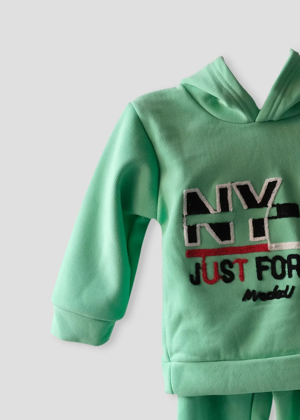 Het pak bestaat uit een hoodie met capuchon en een bijpassende jogginsbroek