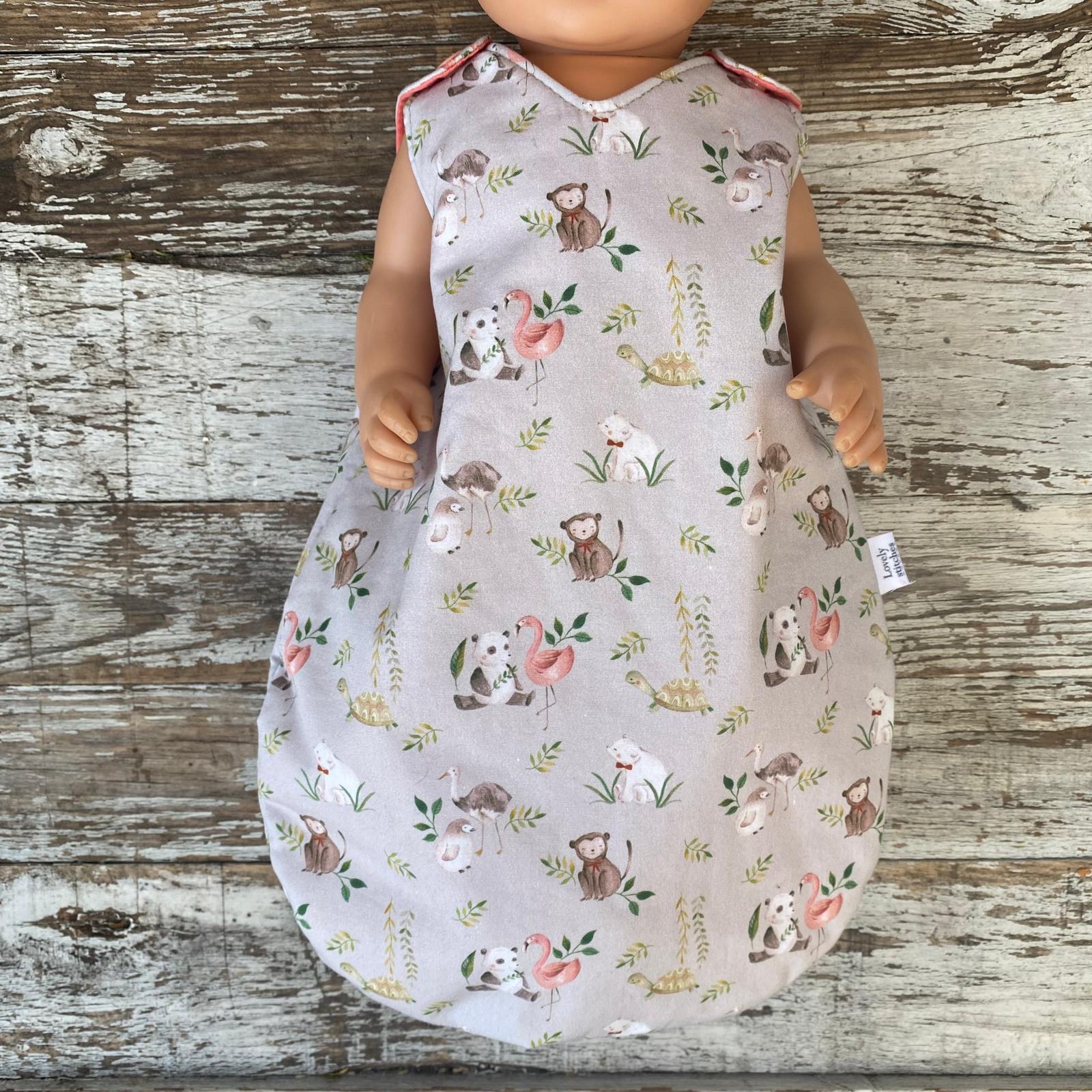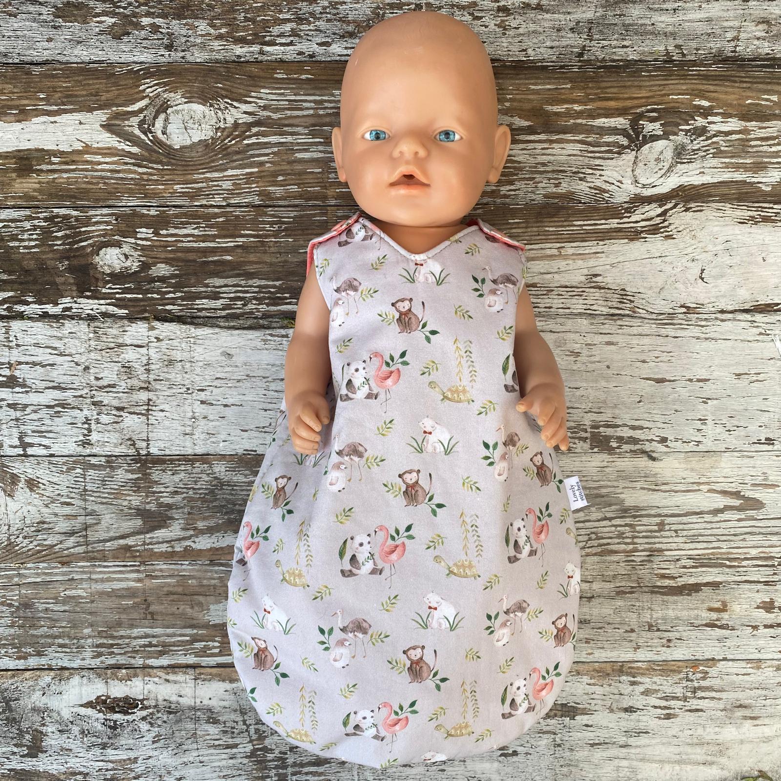 Poppen slaapzakje taupe jungle mt 43– handgemaakt en perfect voor Baby Born
