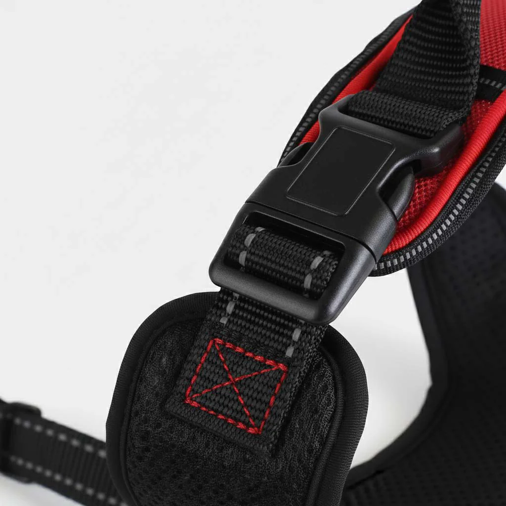 - Anti-trek, anti-wurg ontwerp verdeelt druk gelijkmatig over de borst om wurgen te voorkomen en loopcontrole te verbeteren