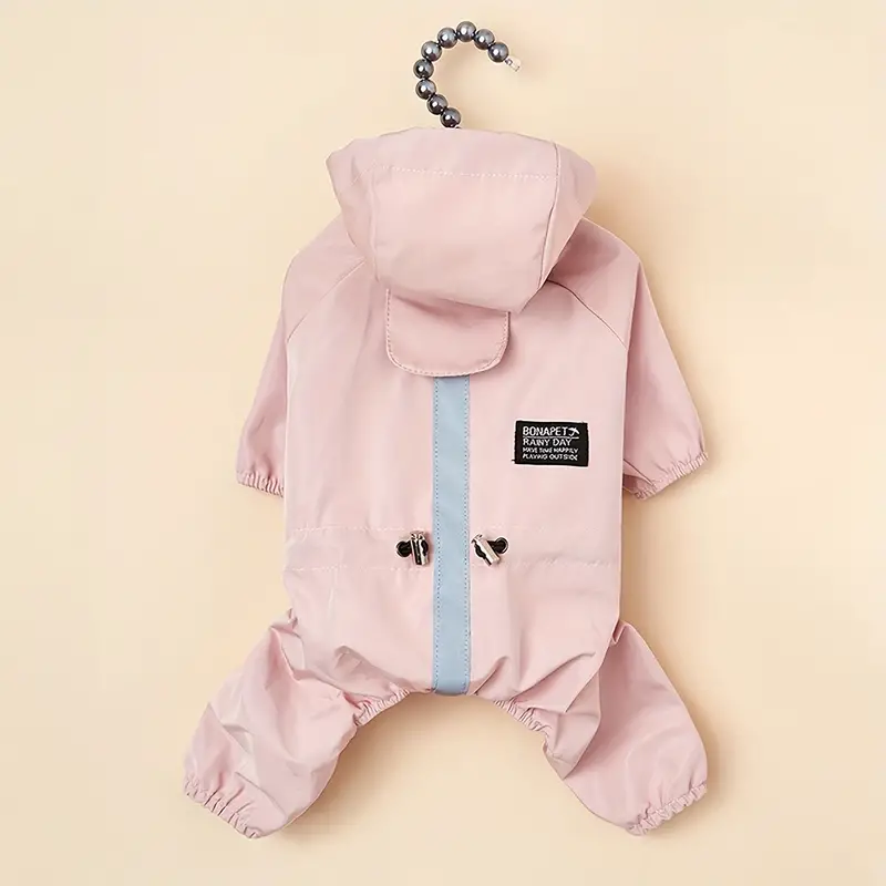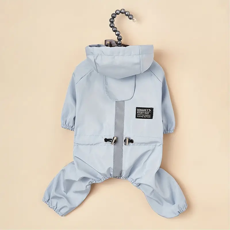 De regenjas voor honden is ontworpen met reflecterende strips met hoge zichtbaarheid, zodat je hond gezien wordt tijdens nachtelijke wandelingen of in omstandigheden met weinig licht. Zo kun je zelfs bij het donkerste weer gerust zijn.