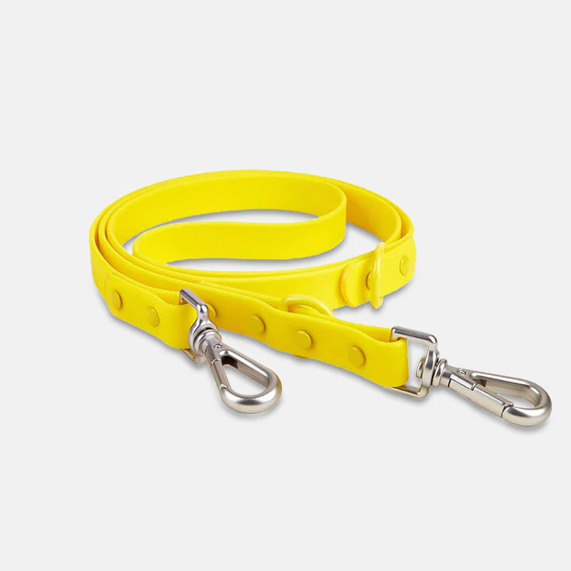 Een stevig, weerbestendig hondenaccessoire dat perfect is voor wandelingen, wandelingen en het strand. Onze riem is sterk genoeg voor grote honden en toch comfortabel voor kleinere pups. Het gemakkelijk te reinigen materiaal blijft zacht en geurloos, ongeacht het avontuur. De riem bestaat uit twee D-ringen waardoor je de lengte naar wens kunt aanpassen.